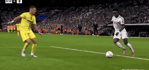 半场结束,两支球队0-0互交白卷。下半场开始后,维尼修斯突然发力,黄色潜水艇右路的防守根本顶不住。