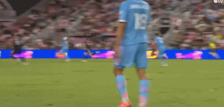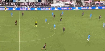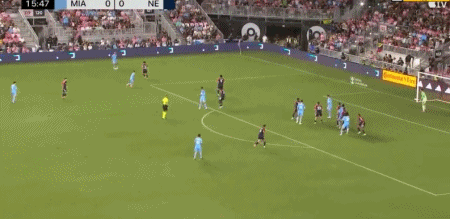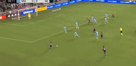 第45+3分钟,梅西禁区内突破横传,阿尔巴踉跄射门得分,迈阿密国际2-0