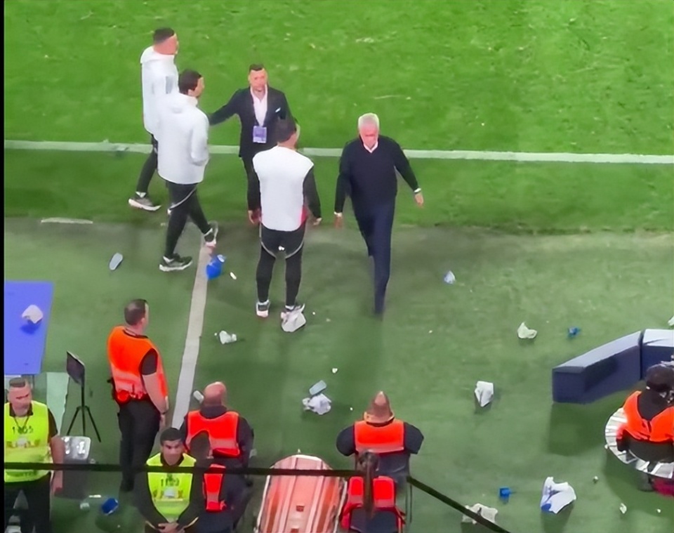 看台上,一些激动的球迷还向穆帅扔杂物。穆帅没有生气,只是将身边的杂物踢走。或许是为了不进一步激怒波尔图的球迷,穆帅随后坐到了替补席上,而不是继续站在场边。