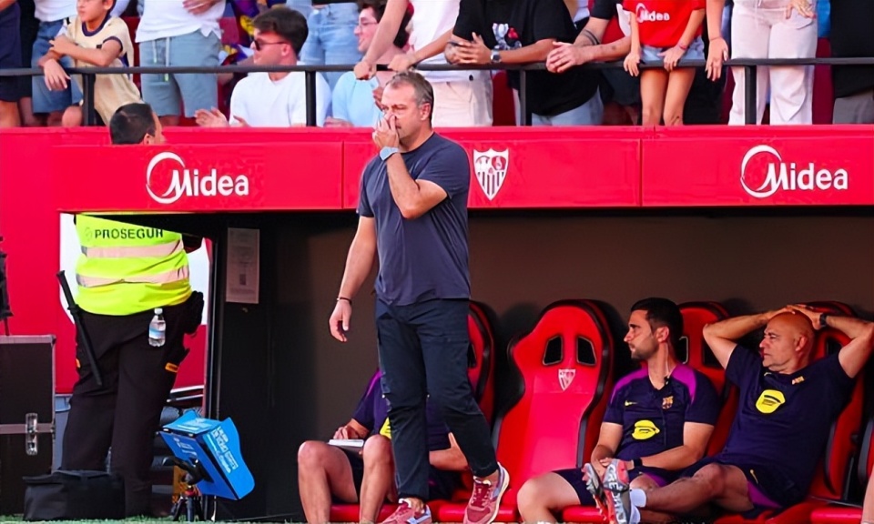 当巴萨获得点球时,弗里克在场边很是开心。而在莱万罚丢点球后,弗里克直接看傻了。在西甲赛场,莱万一共罚过10次点球,丢了3个。巴萨自2020年以来,首次在西甲丢点。