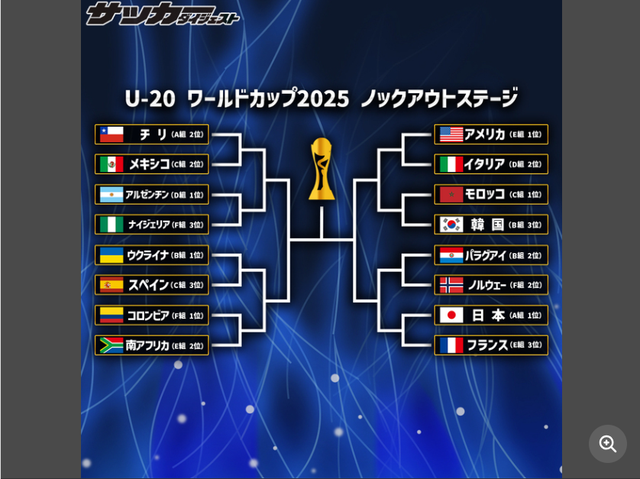 日本媒体制作的2025年U-20男足世界杯16强对阵形势图