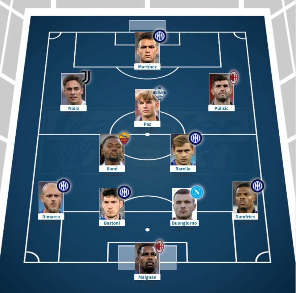 意甲最贵阵容:劳塔罗领衔,国米5人入选,米兰2人尤文1人