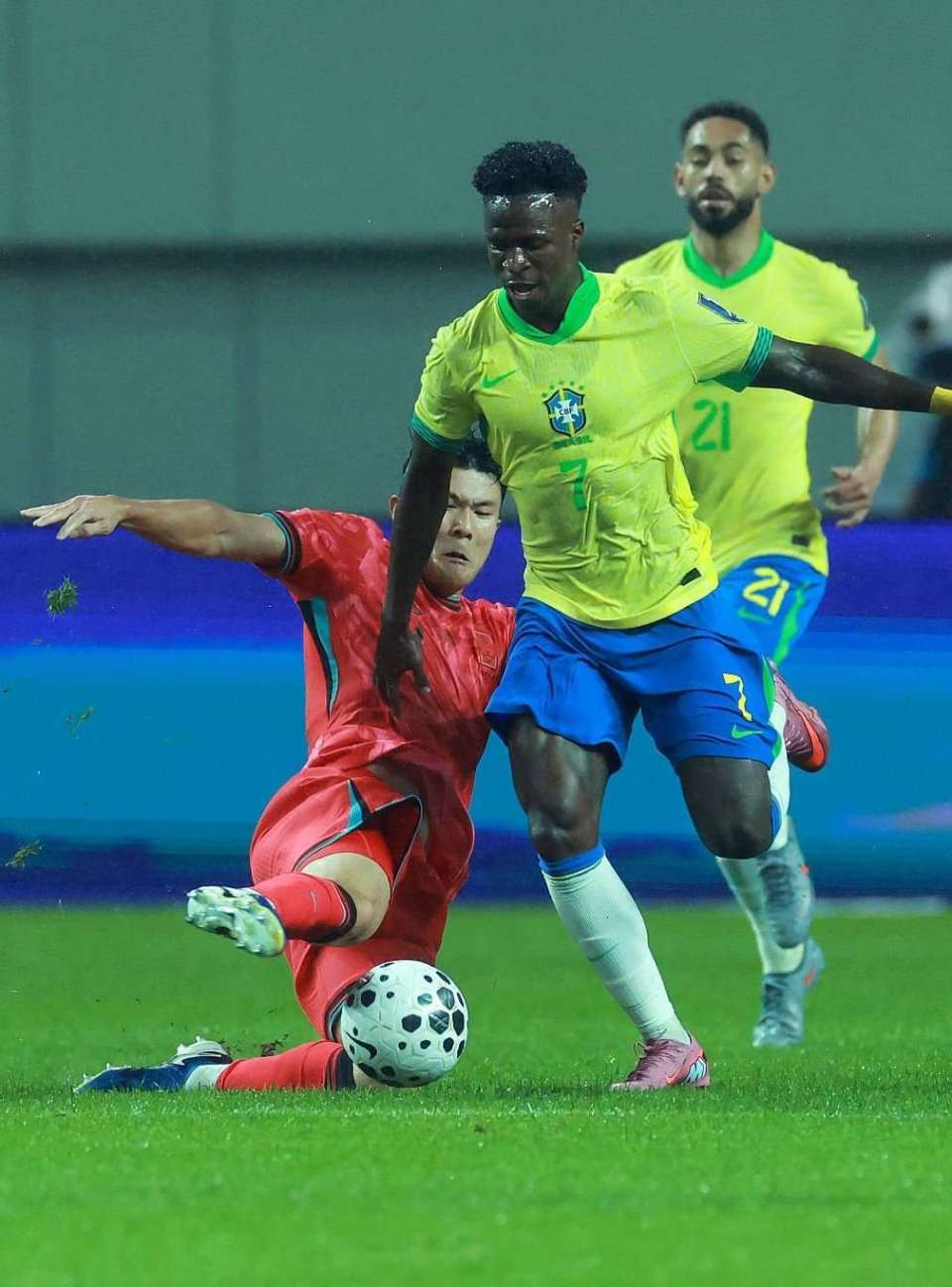 当维尼修斯在第77分钟长途奔袭将球送进球门,这场对阵韩国队的友谊赛最终比分定格在5-0。本场比赛,巴西队将天赋与纪律完美融合,让孙兴慜领衔的韩国队毫无招架之功。不客气地说,安切洛蒂正在打造一支2006年之后最靠谱的巴西队。