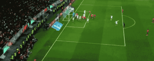 第30分钟,鲁本·内维斯传中,C罗高高跃起准备攻门,爱尔兰防守球员做出关键解围。