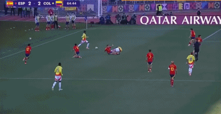 第65分钟,内塞尔-比利亚雷亚尔破门扳平比分,哥伦比亚2-2西班牙