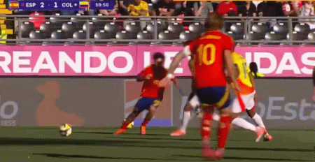 第56分钟,福特亚右路传中,贝莱德中路推射破门扳平比分,西班牙1-1