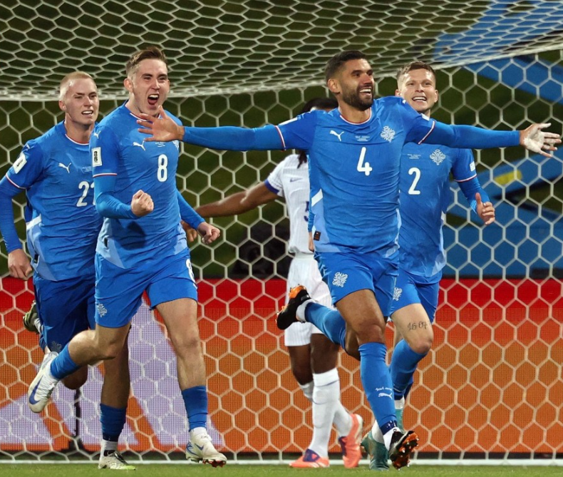 冰岛首发:1-奥拉夫松、4-帕尔松、3-格雷塔松、5-因加松、2-托马松、23-埃勒特松、8-约翰内松、7-哈康-哈拉尔德松、10-古德蒙德松、21-丹尼尔-古德约翰森、9-赛瓦尔-马格努松
