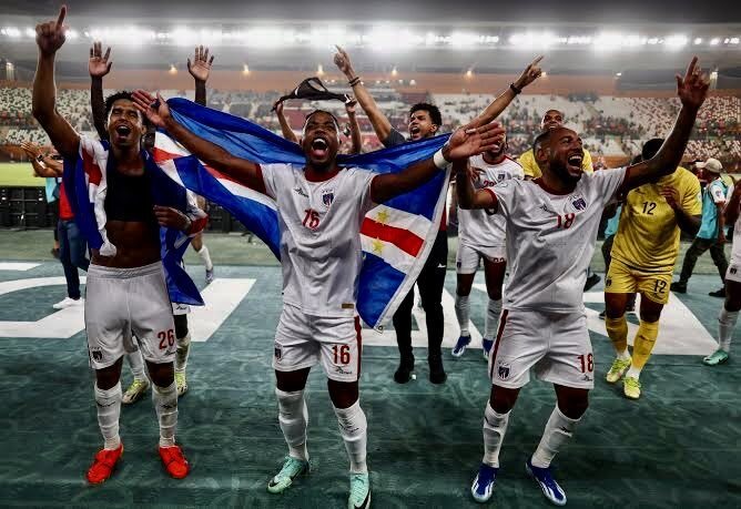 当终场哨响后,佛得角主场的国家体育场,瞬间成为了欢乐的海洋,现场震耳欲聋。佛得角球员们纷纷冲向场内,庆祝球队这一历史性时刻。有的与教练拥抱,有的则直接跪地掩面痛哭,毕竟这一刻或许是他们一生才有的荣耀。随后,佛得角球员身披国旗,绕场热舞。