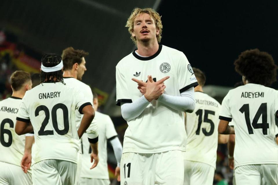 本场比赛德国延续上一轮的首发11人,沃尔特马德继续担任单箭头,维尔茨、格纳布里、阿德耶米、格雷茨卡以及帕夫洛维奇坐镇中场,防线四人组依旧是基米希、约纳坦-塔、施洛特贝克和劳姆,门将则是鲍曼。
