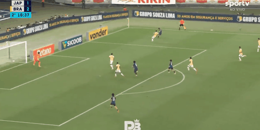 第26分钟,巴西队前场右路打出默契配合,前插到日本队禁区的边后卫保罗恩里克,用一脚捅射,打破了场上的平衡,帮助巴西队取得了1-0的领先。