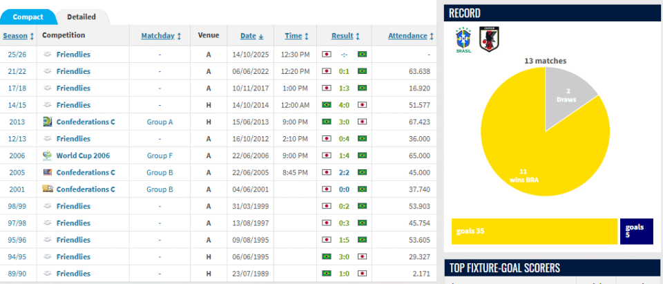此前日本男足13次交手巴西队,仅取得2平11负、进5球丢35球的惨淡战绩,过去36年来,他们从未击败这一强敌。然而在36年的漫长等待后,日本男足终于在今夜改写了历史。