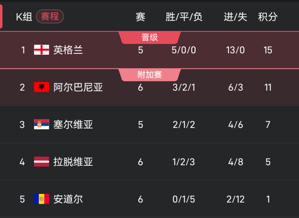 前5轮取得全胜战绩的英格兰将面对拉脱维亚,如果英格兰能取胜,就将在还剩2轮的情况下领先第二名阿尔巴尼亚7分,从而提前锁定小组第一直通世界杯。这将是英格兰队史第17次世界杯之旅,同时连续第8届参加世界杯。