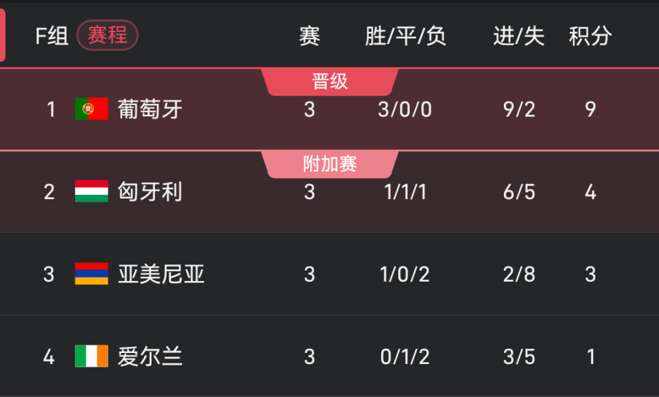 前3轮全胜的葡萄牙将直接面对小组第二匈牙利,如果葡萄牙战胜匈牙利且同组另一场比赛亚美尼亚不能战胜爱尔兰,葡萄牙就将提前2轮进军2026世界杯。这将是葡萄牙队史第9次世界杯之旅,同时也将是40岁C罗的第6次世界杯之旅。