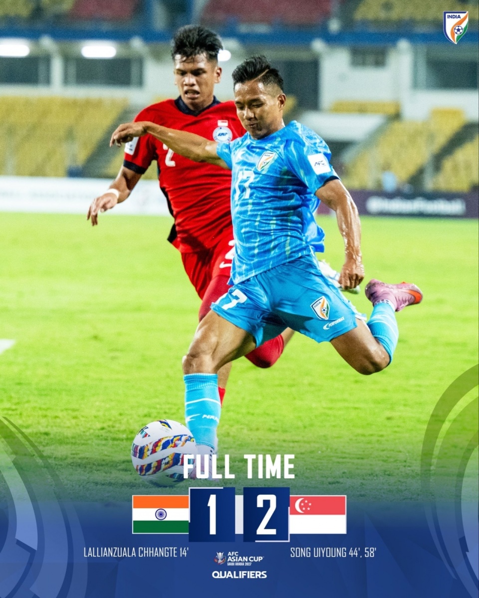 在北京时间10月15日结束的亚洲杯预选赛C组第4轮一场焦点战中,印度男足在主场1-2遭新加坡逆转,提前2轮确定无缘2027年亚洲杯正赛。
