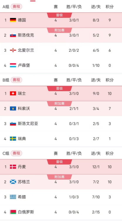 世欧预积分榜:英格兰首支欧洲区晋级球队,德法西葡小组领跑