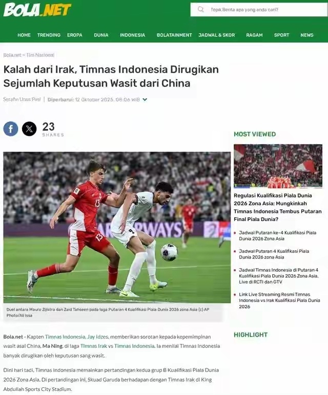 而对于本场比赛马宁的执法,印尼方面显然是非常不满的,印尼足协认为马宁在执法中存在诸多“争议”,印尼遭遇到了多次不公平的判罚,对于伊拉克球员多次违规的动作,马宁均没有做出公正的判罚,这些判罚在比赛的关键节点出现,无疑对印尼队的战术执行产生了重大影响,马宁的一边倒的判罚也改变了本场比赛的走势。