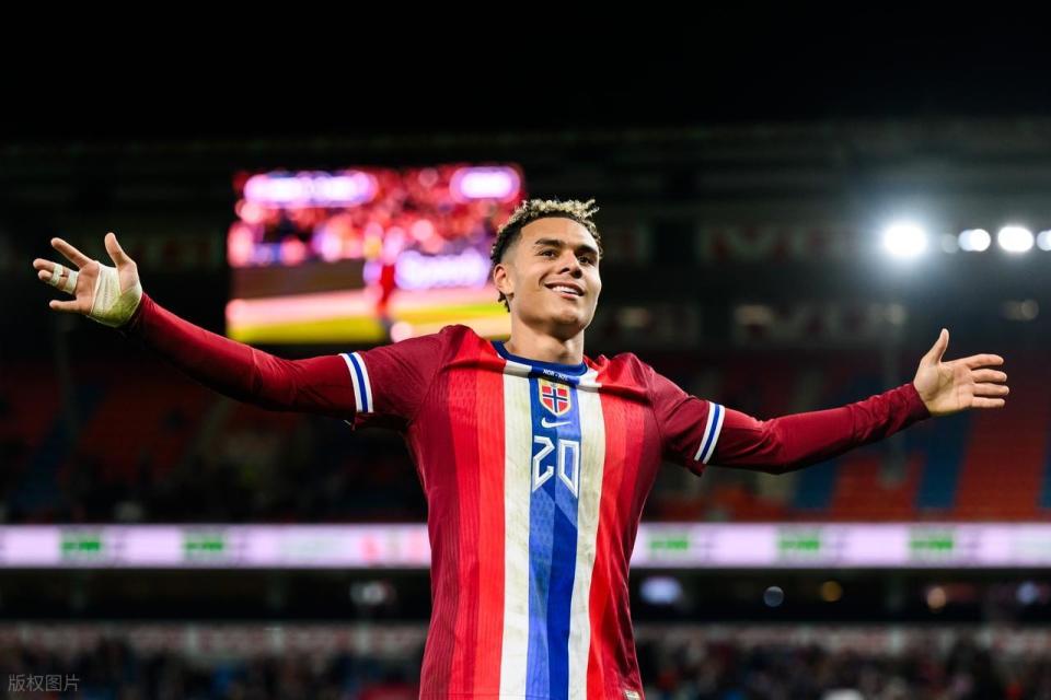 下半场第17分钟,谢尔德鲁普妙传,20岁莱比锡新星努萨利剑出鞘帮助挪威队扳平比分。