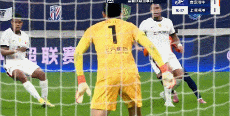 第74分钟,海港禁区内出现混乱,韦林顿从吾米提江-玉苏普抢下皮球后右脚低射,皮球被颜骏凌倒地扑出。
