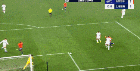 第31分钟,维塔尔前场左侧送出精准长传到禁区左侧,莱昂纳多和刘若钒拍马赶到,莱昂纳多面对出击的门将右脚外脚背挑射入网,海港2-1反超。
