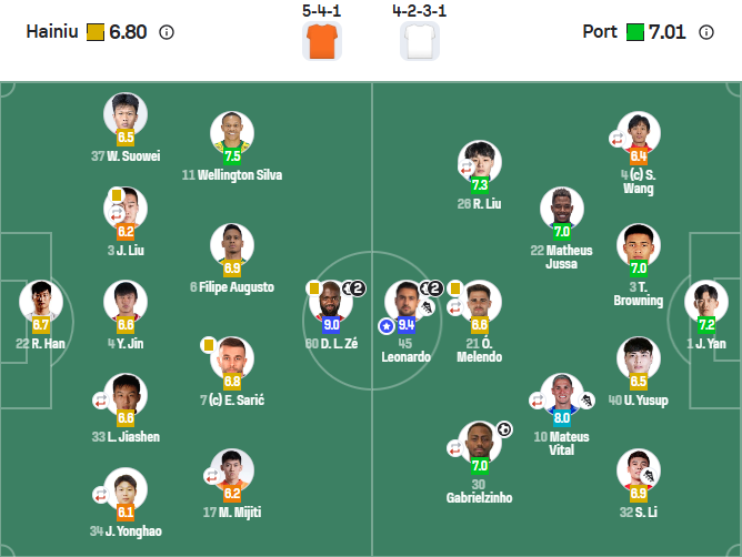 中场:6-菲利佩-奥古斯托(F)、7-萨里奇(F)、17-买乌郎(54’8-林创益)、11-韦林顿-席尔瓦(F)