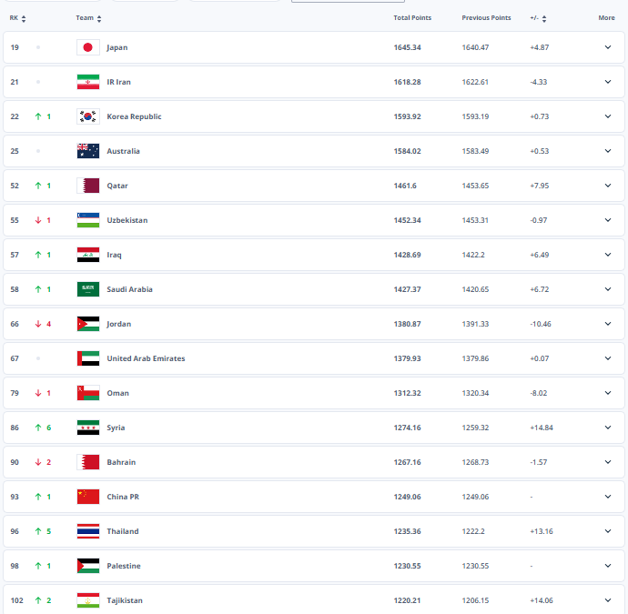 FIFA最新一期世界排名:西班牙领跑,国足上升1位至93名