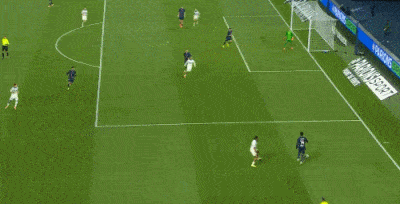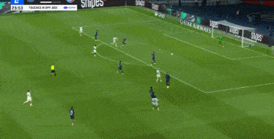 上半场结束前,巴黎被反超了,他们后场传球失误。