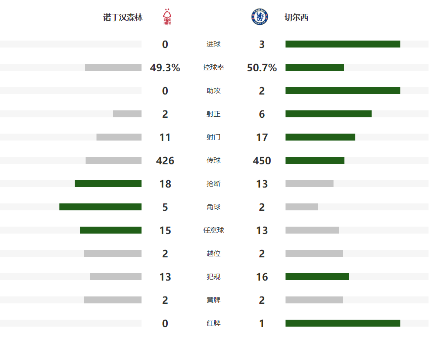 本场比赛切尔西上半场连续出现低级失误,但诺丁汉森林都没有把握住,下半场换人之后的蓝军开始发力,靠着内托的传射建功、19岁小将阿昌庞和詹姆斯的进球,客场3-0击败诺丁汉森林。