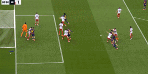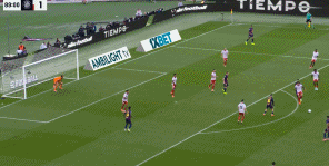 第92分钟,德容传中,客串中锋的巴萨中卫阿劳霍前点扫射破门,2-1。