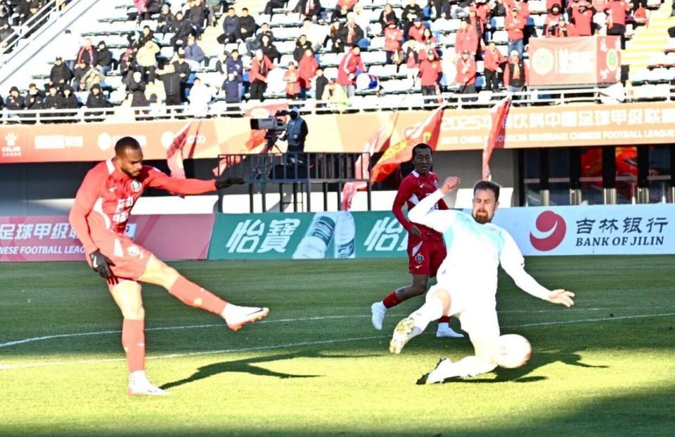 此役辽宁铁人队做客嘉定体育场,第8分钟安以恩破门取得领先,第45+5分钟姆本扎进球扩大优势,第49分钟姆本扎梅开二度,辽宁铁人队客场3球大胜。