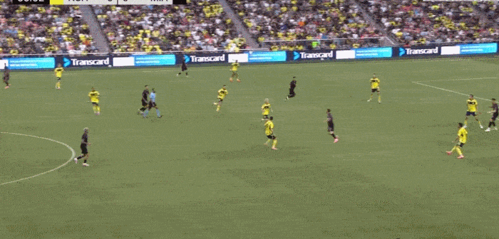 伤停补时阶段,梅西本可以上演大四喜,但他无私的放弃了。迈阿密右路推进,传球到中路,梅西接应。