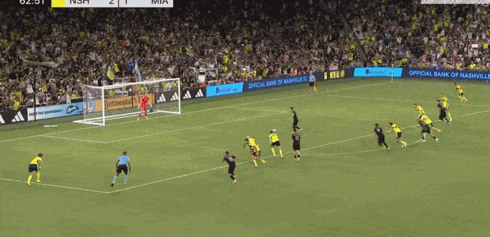 第66分钟,梅西策划进攻,苏亚雷斯射门被扑,但B·罗德里格斯补射命中,迈阿密3-2反超比分。