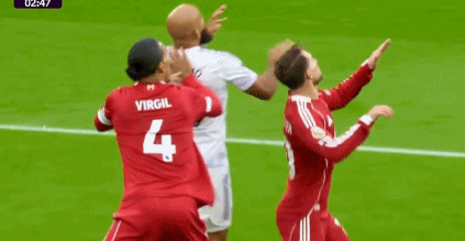 然而,这也是一个存在巨大争议的进球。关键在于,在争抢头球时,范戴克不慎肘击麦克阿利斯特,导致后者头部受伤后倒地。看到麦克阿利斯特受伤倒地,范戴克反应稍慢,让姆贝莫得到了在小禁区起脚射门的机会。