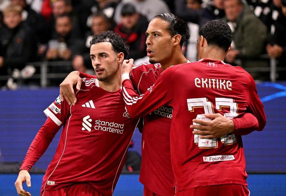 远征客场的利物浦,后防线的表现依旧是一言难尽,第26分钟被主场作战的法兰克福取得领先,好在利物浦本场比赛进攻端表现不俗,埃基蒂克弑杀旧主,吹响了反扑的号角,半场结束前,范迪克和科纳特连续利用角球机会攻破主队大门,下半场加克波和索博斯洛伊分别建功,帮助利物浦5-1逆转获胜。