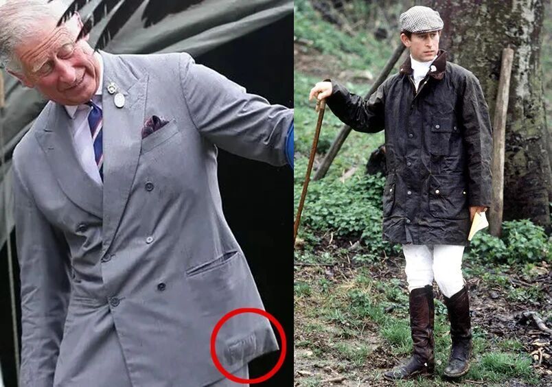 查尔斯示范:一件打了几十年补丁的西装,以及经常重新上蜡的Barbour夹克。这不是为了证明自己亲民,而是为了应对英国阴冷潮湿、说翻脸就翻脸的天气。