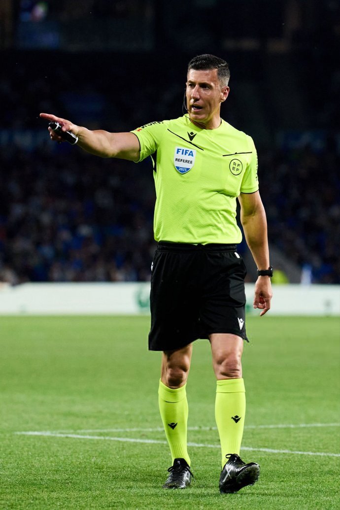 在那场争议十足的比赛中,索托先是在第18分钟判罚库巴西绊倒巴斯克斯犯规,判给皇马一粒点球由维尼修斯主罚命中,随后第28分钟,他又再次做出有利皇马的判罚。当时亚马尔的进球被皇马门将卢宁在门线上将球捞出,VAR长时间介入后认定没有进球。