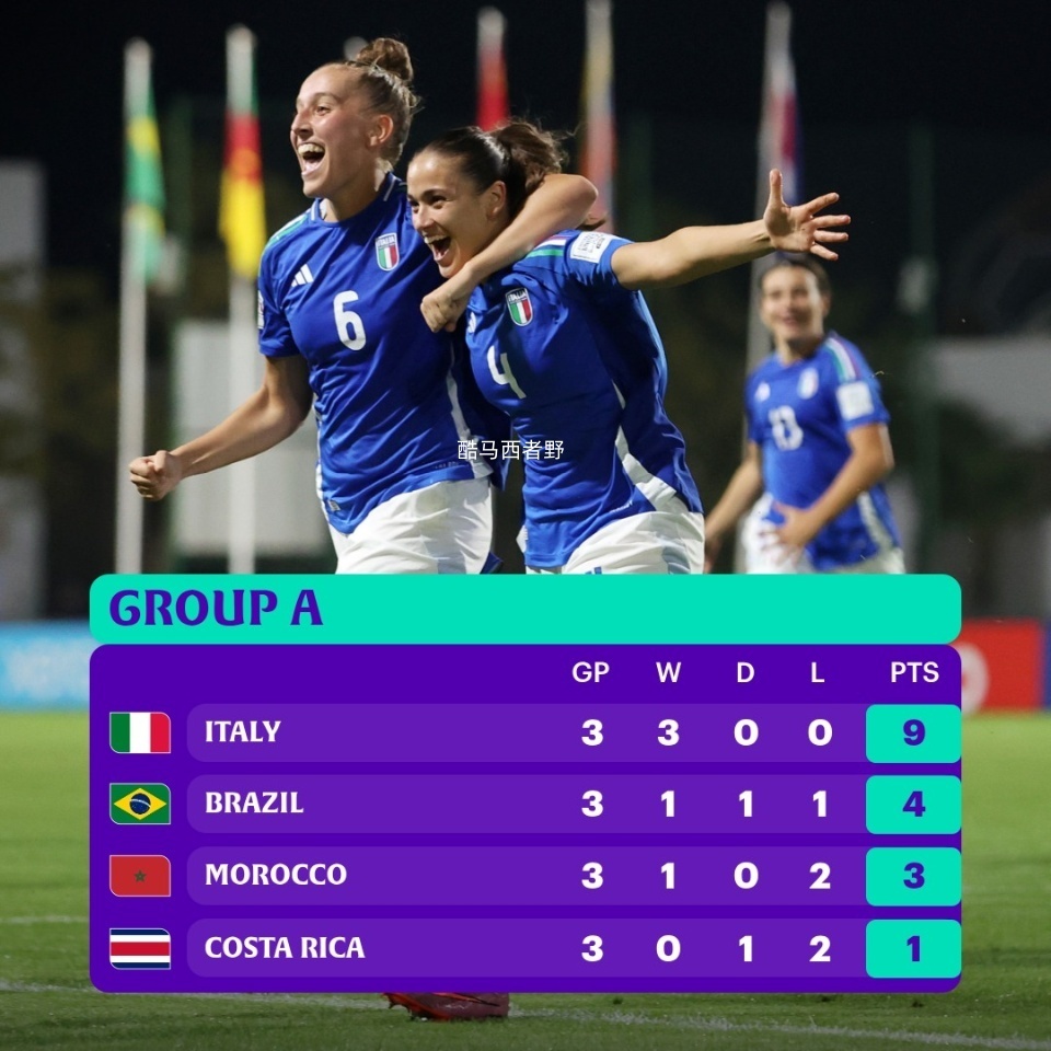 今天回看了A组最后一轮意大利和巴西女足的比赛,说说我的感受。在这场比赛之前我说过我希望我们八强赛碰到的是巴西女足而不是意大利女足,这是基于本届杯赛的揭幕战东道主摩洛哥女足和巴西女足的比赛,看过这场比赛之后更坚定了我的想法,巴西女足是我们有机会进入八强的最好选择,一提起巴西女足我们大多数球迷都会有一种代入感,首先想到的就是桑巴足球,首先想到的是巴西男足。