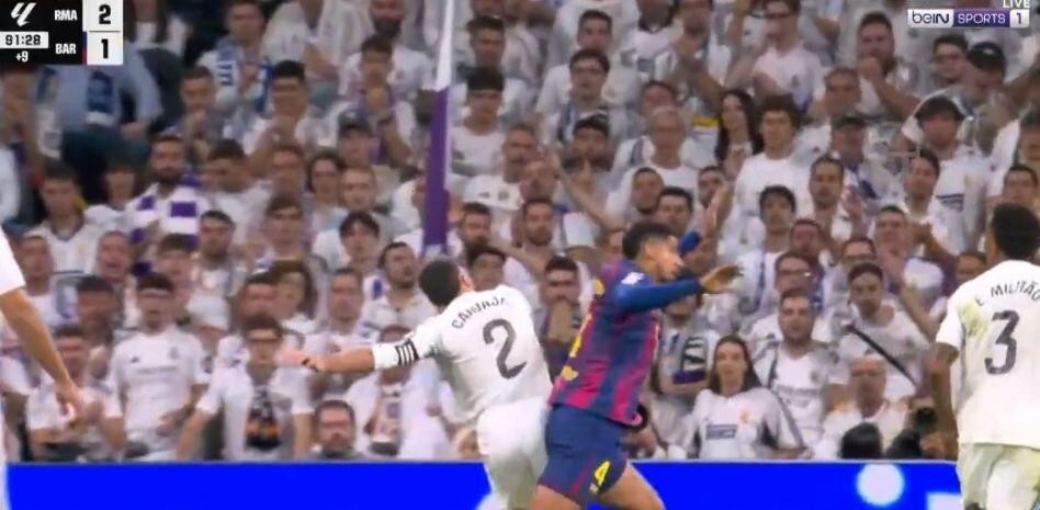 报道称,巴塞罗那在比赛最后阶段因一粒未判罚的点球而遭受不利,卡瓦哈尔作为距离阿劳霍最近的后卫,并未选择争抢球权,而是公然冲撞巴萨球员,导致对方失去平衡并明显摔倒在禁区内。阿劳霍随即索要点球,但无论是索托-格拉多还是VAR都未予理会。