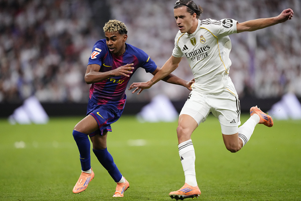 面对亚马尔的宣战,皇马球星们也在积极反攻,皇马的中场核心贝林厄姆是国家德比表现最好的球员,他在赛后第一时间更新了社交媒体,配文是“空谈无用,支持皇马”。