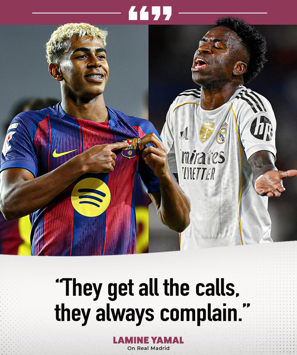 这次德比之前,亚马尔公开在电视节目上讽刺皇马,声称他们是小偷、爱搞小动作、只会抱怨,还内涵他们有裁判的偏袒等等。