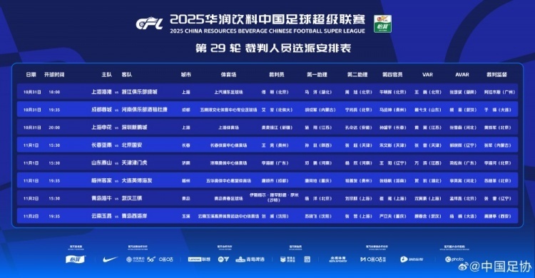 这3场关键的比赛,中国足协也是安排了名哨执法。海港比赛的主裁是傅明,而蓉城这场比赛的主裁判是艾堃,申花比赛的主裁是麦麦提江。