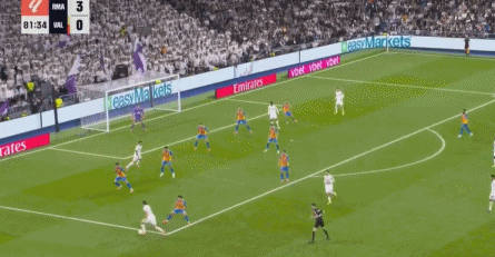 第82分钟,罗德里戈内切兜射被封堵,卡雷拉斯将球拦下,禁区左侧小角度打出神仙球,直挂球门右上角,打进皇马生涯处子球,比分改写成4-0!
