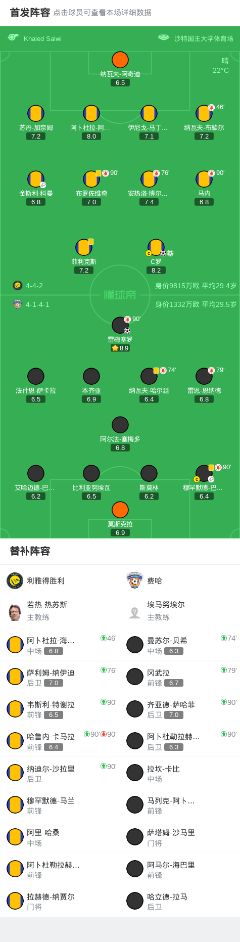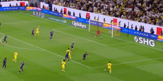 第37分钟,科曼助攻,C罗反越位冷静破门,利雅得胜利1-1!