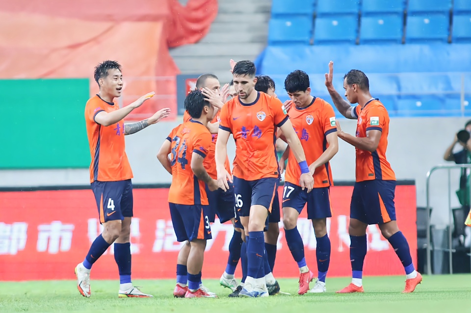 本场比赛青岛海牛首发5-4-1阵型,兰克尔泽单箭头,林创益、奥古斯托在中场,席尔瓦和萨里奇在边路,海牛本赛季经常用5后卫阵型,今天依然是熟悉的套路,而且比赛开始后不久,他们就收获了进球!