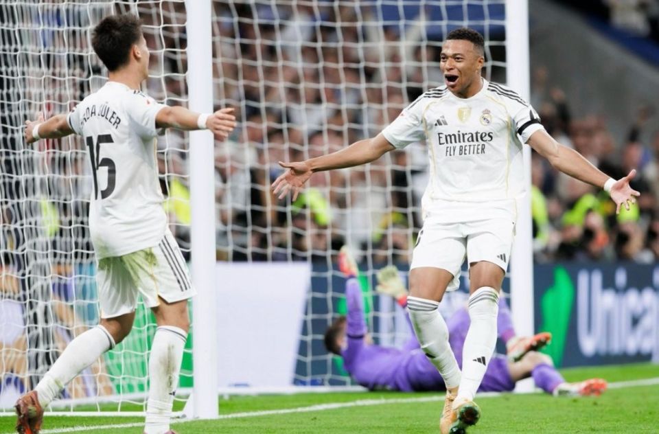 第31分钟,姆巴佩卷土重来。皇马在左路打穿了对方防线,居莱尔挑传中路,姆巴佩后点凌空垫射破门。短短12分钟,姆巴佩就打进2球,让皇马2-0领先。再一次,他靠一己之力结束了比赛的悬念。