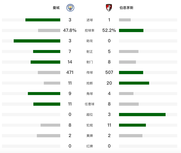 在北京时间11月3日凌晨结束的英超第10轮一场焦点战中,曼城在主场3-1完胜伯恩茅斯。上半场,哈兰德双响,谢尔基2助,泰勒-亚当斯破门。下半场,奥莱利为曼城锁定胜局。