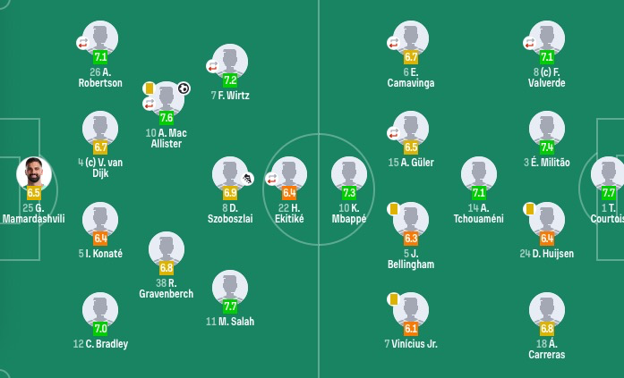 利物浦首发:25-马马尔达什维利、12-布拉德利、4-范戴克、5-科纳特、26-罗伯逊(886-科尔克兹)、38-赫拉芬贝赫、8-索博斯洛伊、10-麦卡利斯特(69'17-琼斯)、11-萨拉赫、22-埃基蒂克(69'18-加克波)、7-维尔茨(88'14-基耶萨)