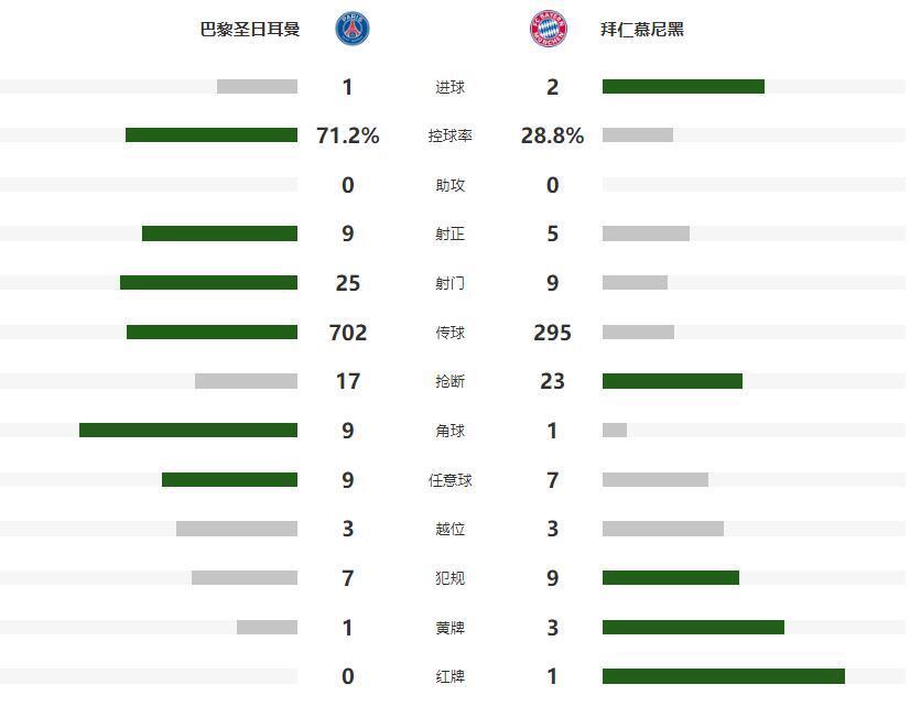 第74分钟,奥利塞后场拿球被抢断,大巴黎顺势形成反击,李刚仁的传中,助攻内维斯侧钩破门,将比分追至1-2,不过接下来的时间,拜仁没有再给大巴黎机会,如愿将2-1的比分保持到了最后。