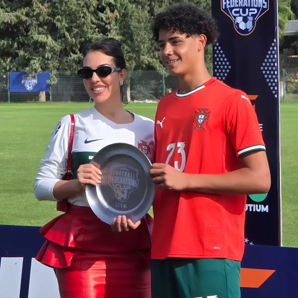 当地时间11月4日,葡萄牙球星克里斯蒂亚诺·罗纳尔多(C罗)的长子迷你罗,捧起了冠军奖杯,据称这是他进入足球界发展后的第二个冠军头衔。