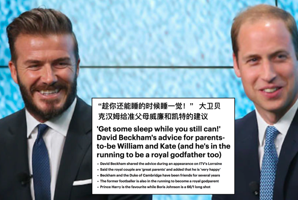 威廉和凯特生乔治王子那会儿,小贝被曝连夜私信,向威廉传授“育儿经”,只为了让“兄弟”多睡一会儿。