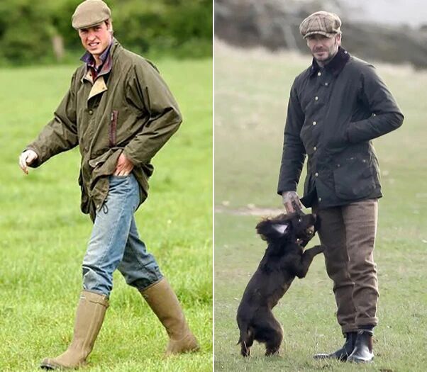 除此之外,小贝还会pick猎装外套+卡其裤+报童帽的“老钱乡村三件套”。查尔斯挚爱的猎装靴,买!威廉同款Barbour油蜡外套,囤!